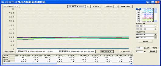 可顯示出溫室內(nèi)各測(cè)量參數(shù)的日、月、季、年參數(shù)變化曲線,根據(jù)該曲線可合理的設(shè)置系統(tǒng)參數(shù)值,以及分析各參數(shù)變化對(duì)作物生長(zhǎng)的影響。