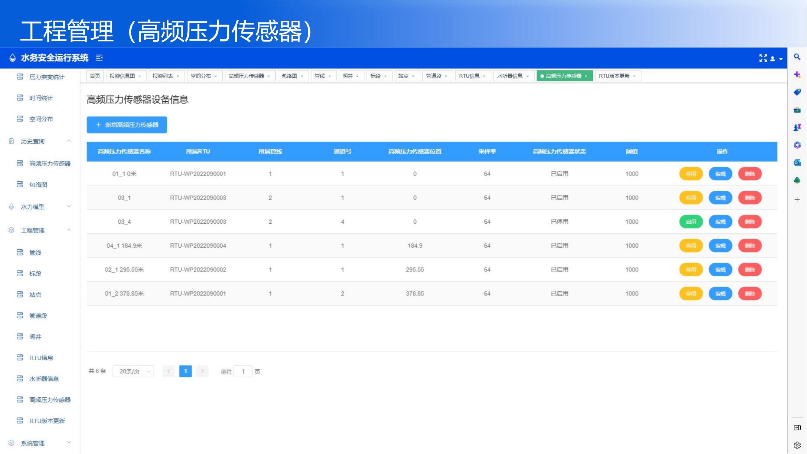 某某工程在管線的排氣閥井設(shè)置xx套傳感器(高頻壓力+水聽(tīng)器+RTU套件),用于監(jiān)...